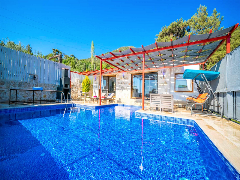 Havuz ve Bahçe : Villamızın özel yüzme havuzun muhafazakar olup dışardan kesinlikle görünmemektedir. Şezlong, şemsiye, yemek masası, barbekü bulunmaktadır.